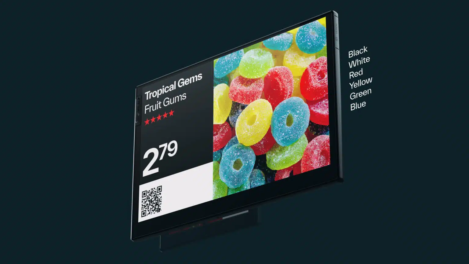 Repensez l’expérience et l’engagement des clients en rayon avec les étiquettes électroniques Full-Color de la série V700. Démarquez-vous efficacement avec sa palette de couleurs vives : noir, blanc, rouge, jaune, vert et bleu, et images de haute qualité.