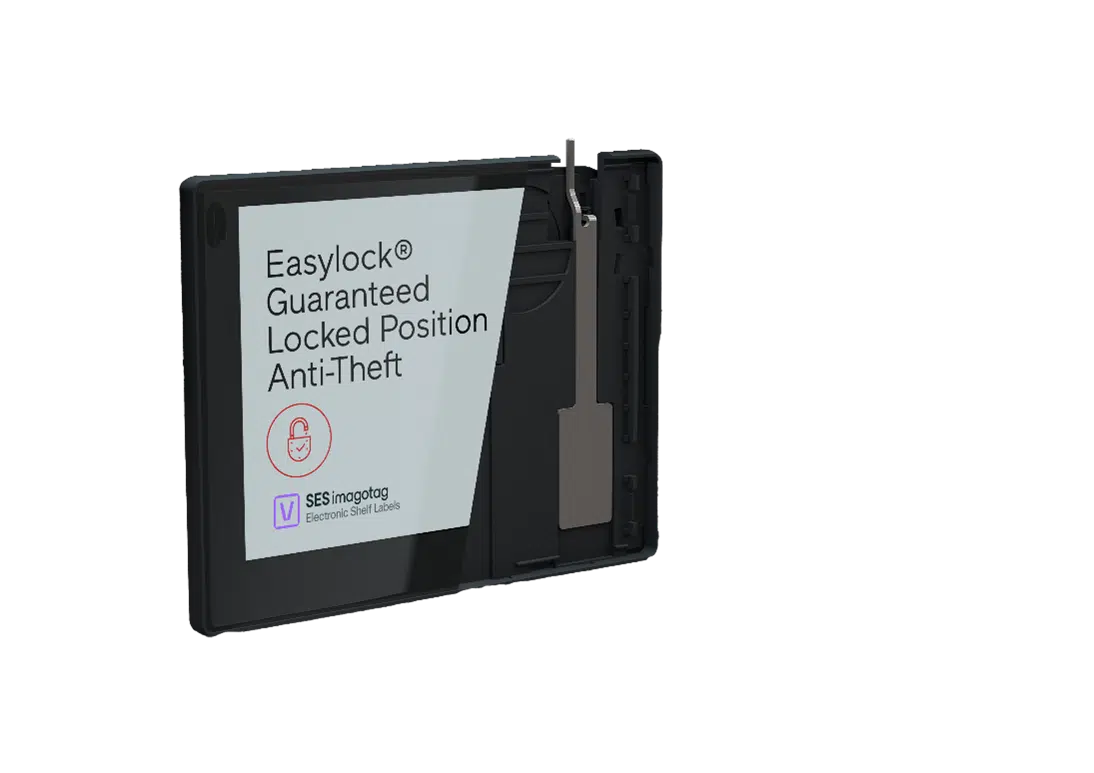 SESimagotag a développé des fixations VTag spécifiques pour répondre aux besoins de tous les commerçants. Les fixations VTag sont conçues pour être tournées, adaptées et facilement démontables à tout moment. Ils s’adaptent parfaitement à toutes les étagères et peuvent être inclinés selon l’angle souhaité. Nos fixations et notre solution Easylock© sont brevetées et ont fait leurs preuves pour une installation sans souci.